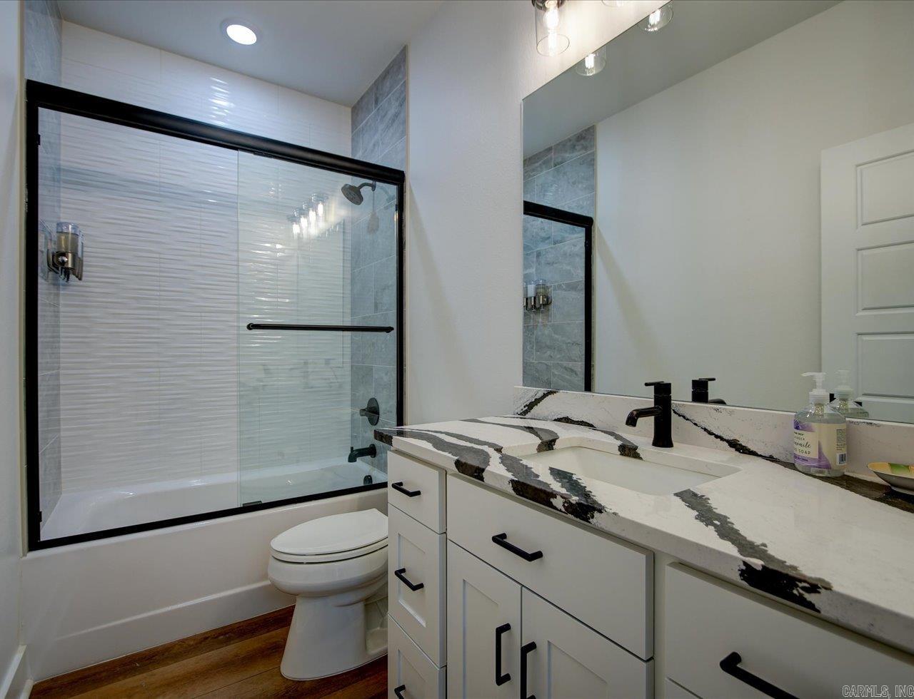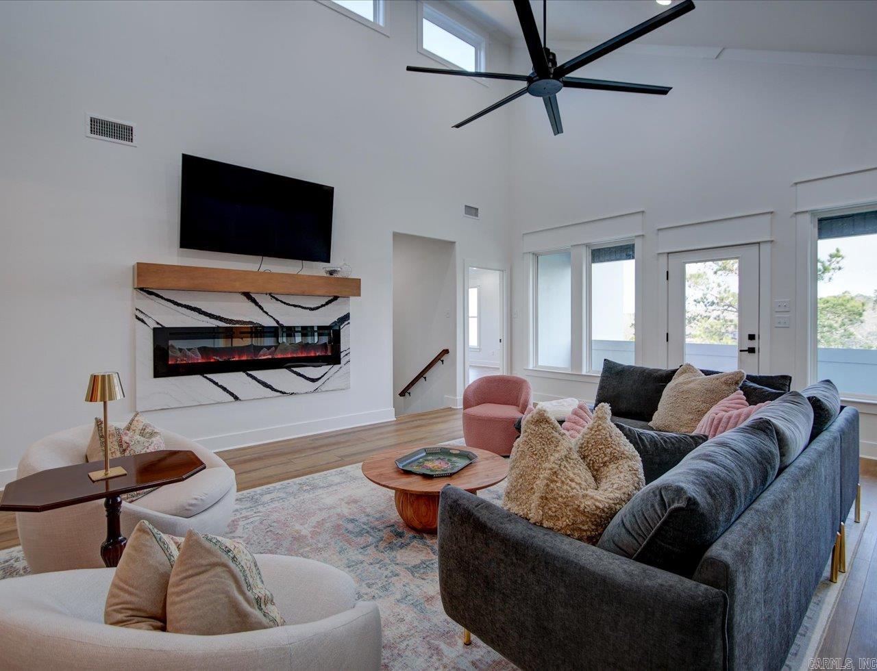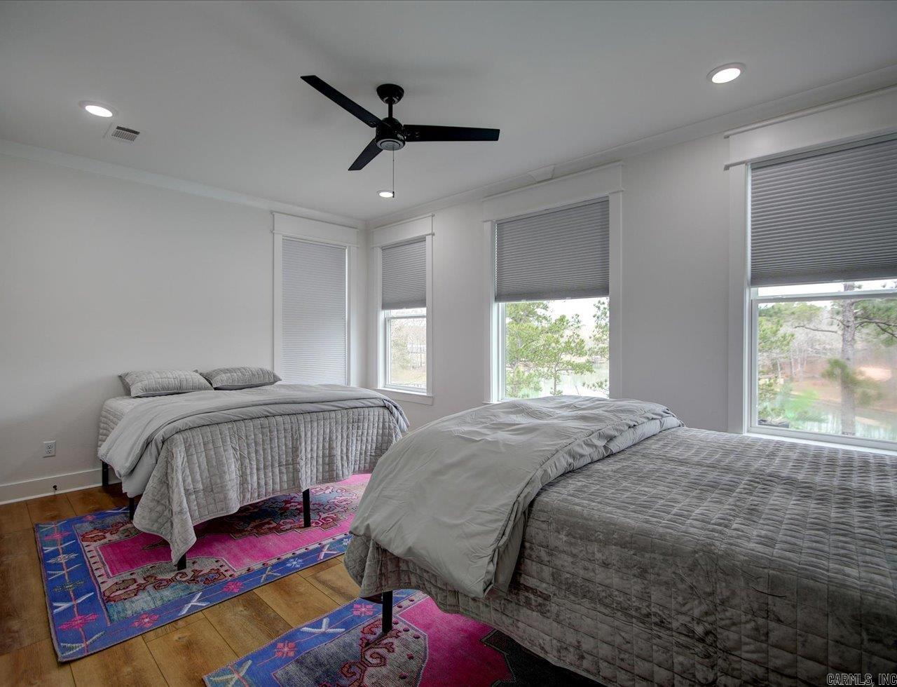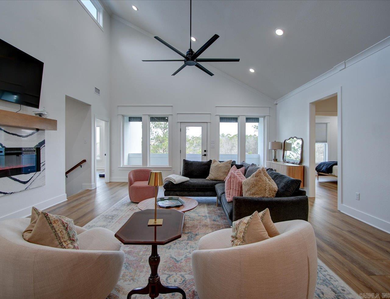 Luxury Lakefront Living Newer Construction on Lake Hamilton Built in 2023 and tucked away with no through traffic, this exceptional Lake Hamilton lakefront home offers modern design, flexible living spaces, and year-round water access in a peaceful setting. With 6 bedrooms, 3 full baths, 2 half baths, and three laundry areas, the thoughtfully designed layout provides comfort and convenience for everyday living and entertaining. Both levels feature full kitchens with quartz countertops, Café appliances, and refined finishes, making the home ideal for multi-level living or hosting guests. Expansive windows throughout capture sweeping lake views and fill the interiors with natural light, while multiple living areas create space to gather or unwind. An on-demand generator adds an extra layer of reliability and comfort. Outdoor living is a standout, with a gunite infinity pool overlooking the water and a private single-bay boat dock equipped with a trolley system for easy lake access. Whether boating, fishing, or enjoying the scenery, the setting delivers a true Lake Hamilton lifestyle. Combining newer construction, luxury features, and a serene waterfront location, this property