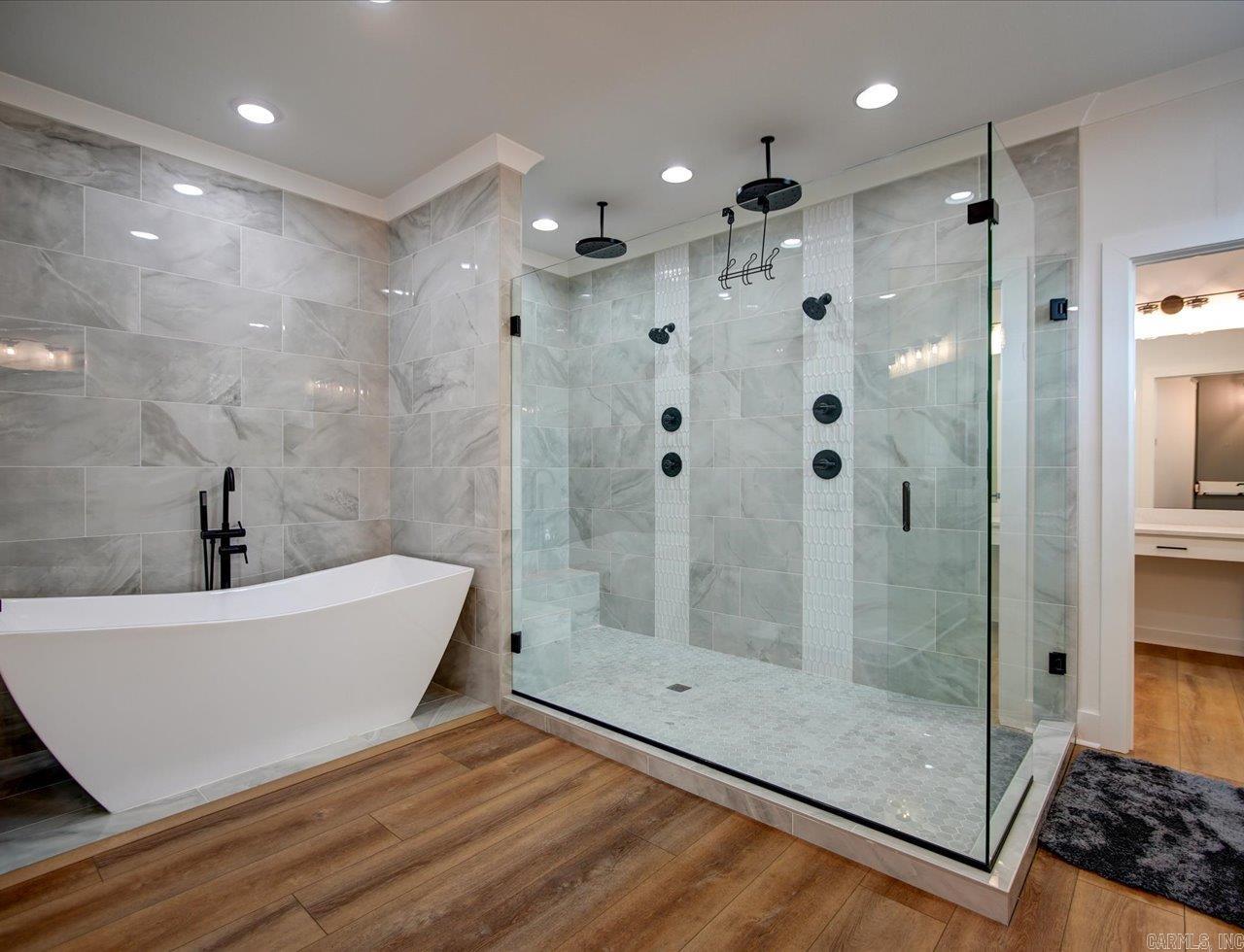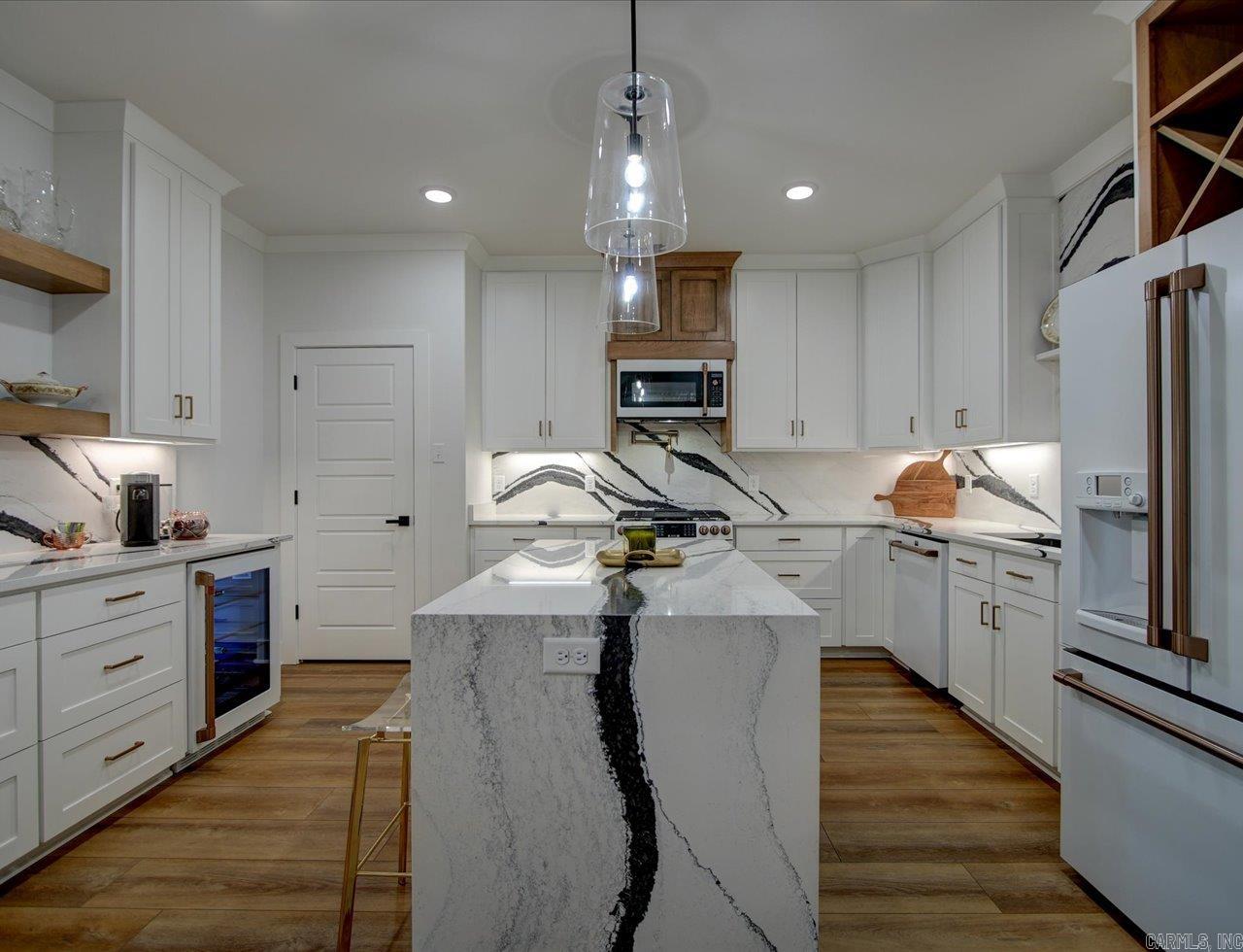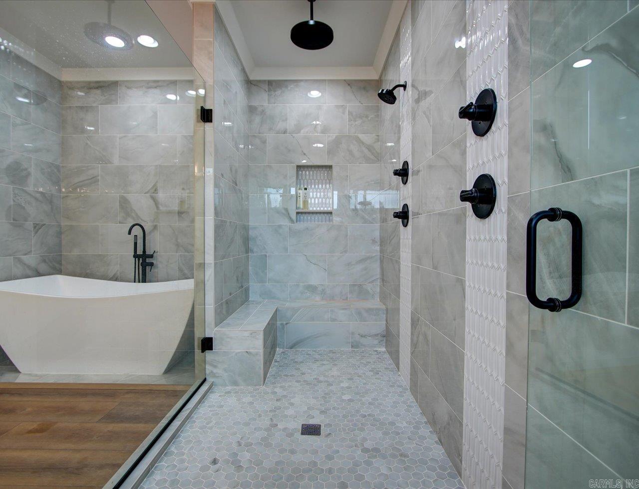 Luxury Lakefront Living Newer Construction on Lake Hamilton Built in 2023 and tucked away with no through traffic, this exceptional Lake Hamilton lakefront home offers modern design, flexible living spaces, and year-round water access in a peaceful setting. With 6 bedrooms, 3 full baths, 2 half baths, and three laundry areas, the thoughtfully designed layout provides comfort and convenience for everyday living and entertaining. Both levels feature full kitchens with quartz countertops, Café appliances, and refined finishes, making the home ideal for multi-level living or hosting guests. Expansive windows throughout capture sweeping lake views and fill the interiors with natural light, while multiple living areas create space to gather or unwind. An on-demand generator adds an extra layer of reliability and comfort. Outdoor living is a standout, with a gunite infinity pool overlooking the water and a private single-bay boat dock equipped with a trolley system for easy lake access. Whether boating, fishing, or enjoying the scenery, the setting delivers a true Lake Hamilton lifestyle. Combining newer construction, luxury features, and a serene waterfront location, this property