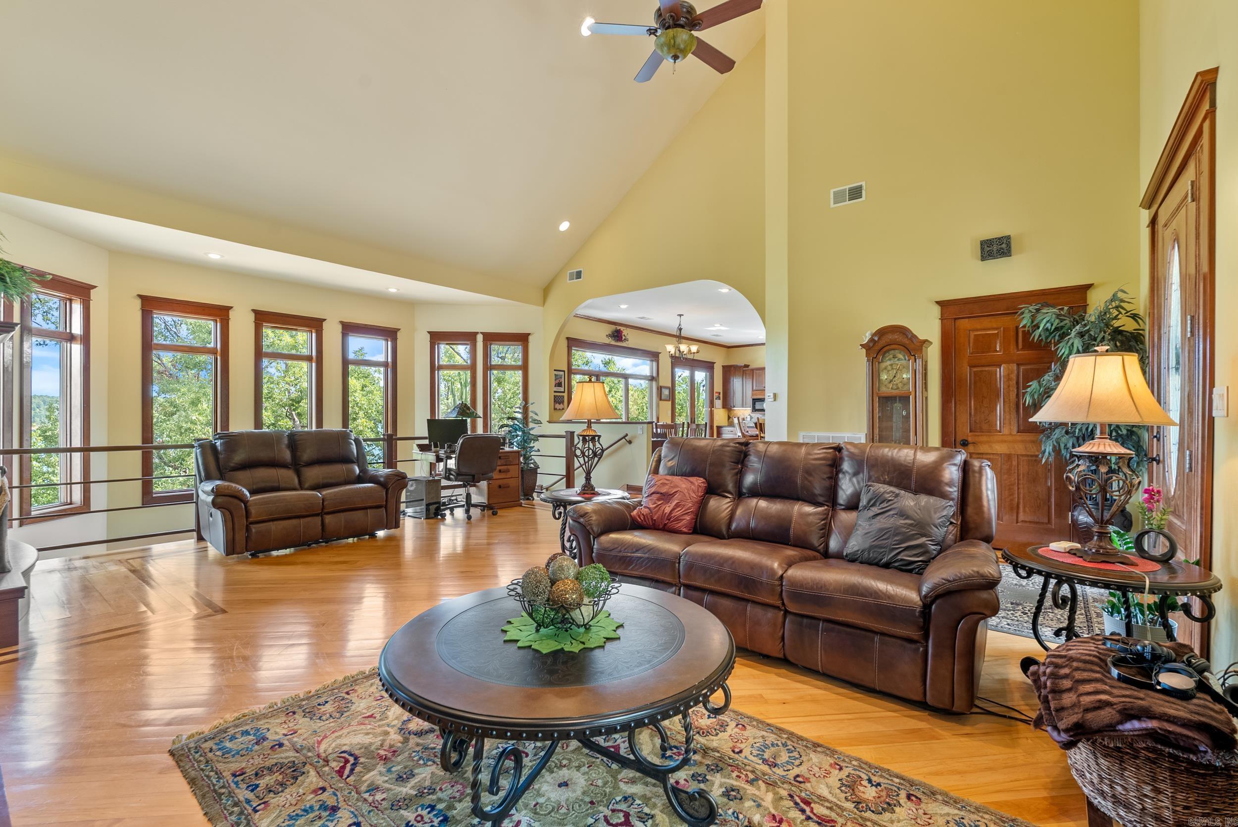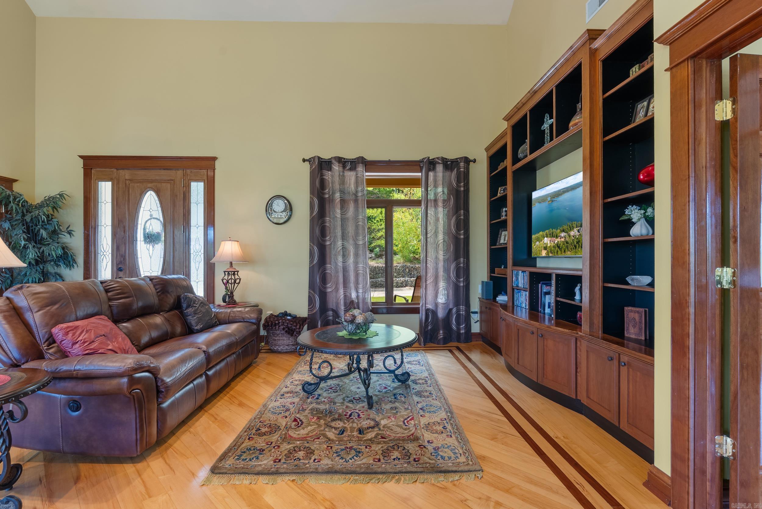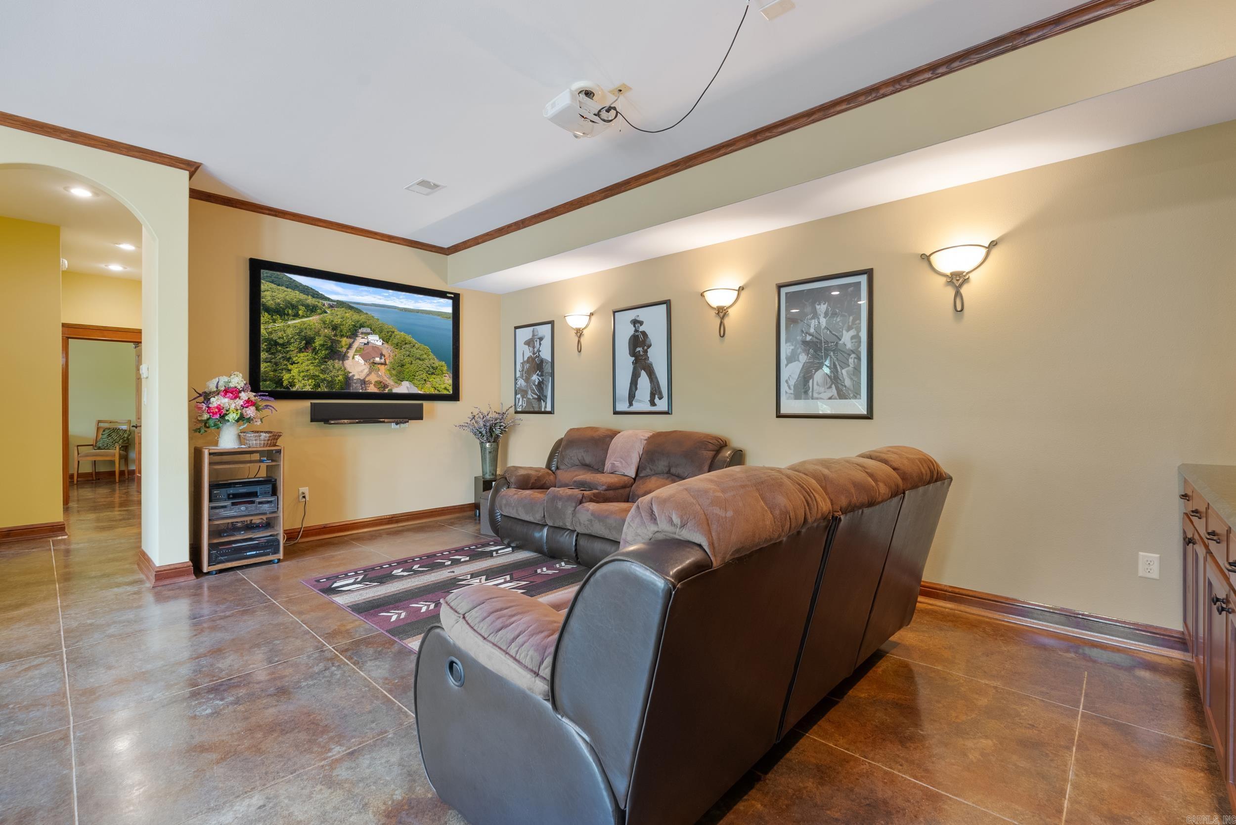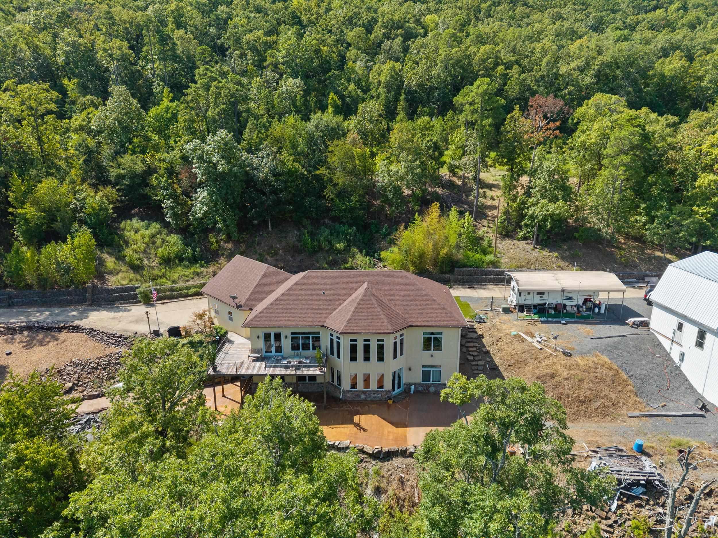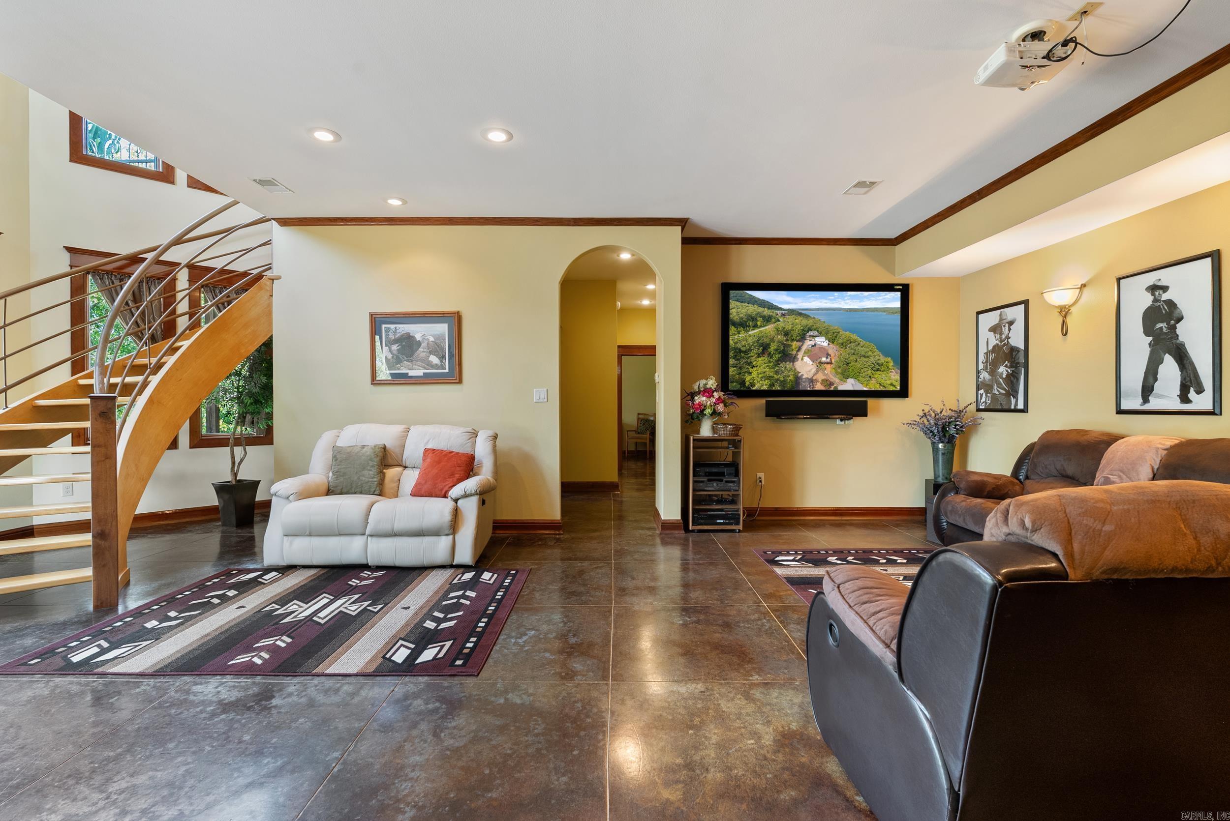 Welcome to your dream retreat on beautiful Greers Ferry Lake! This luxurious lakefront home is full of warmth, character, & high-end finishes—from stunning in-laid floors to customized cherry wood trim, cabinets and beautiful doors. The open floor plan offers bright, spacious living with breathtaking lake views from nearly every room—perfect for relaxing or entertaining. A grand, sweeping staircase connects two inviting living areas, each with its own cozy fireplace. Enjoy movie nights in the dedicated theater area & host friends & family with ease in multiple entertainment spaces. The walk-out basement opens to a large patio—ideal for lakeside gatherings and sunset views. A gourmet kitchen with generous pantry makes entertaining effortless, while the built-in tornado and storage room adds extra peace of mind. For added convenience, nearby boat launch & storage facilities make enjoying the lake even easier—bring your boat, jet skis, & water toys with confidence. Located twenty minutes from Sugar Loaf park & twenty minutes from Highway 65. 2x6 Construction, spray foam insulation, New Roof in 2025, newer DW&Fridge, oversized 2 car garage (700+sqft) Lake living at its finest!