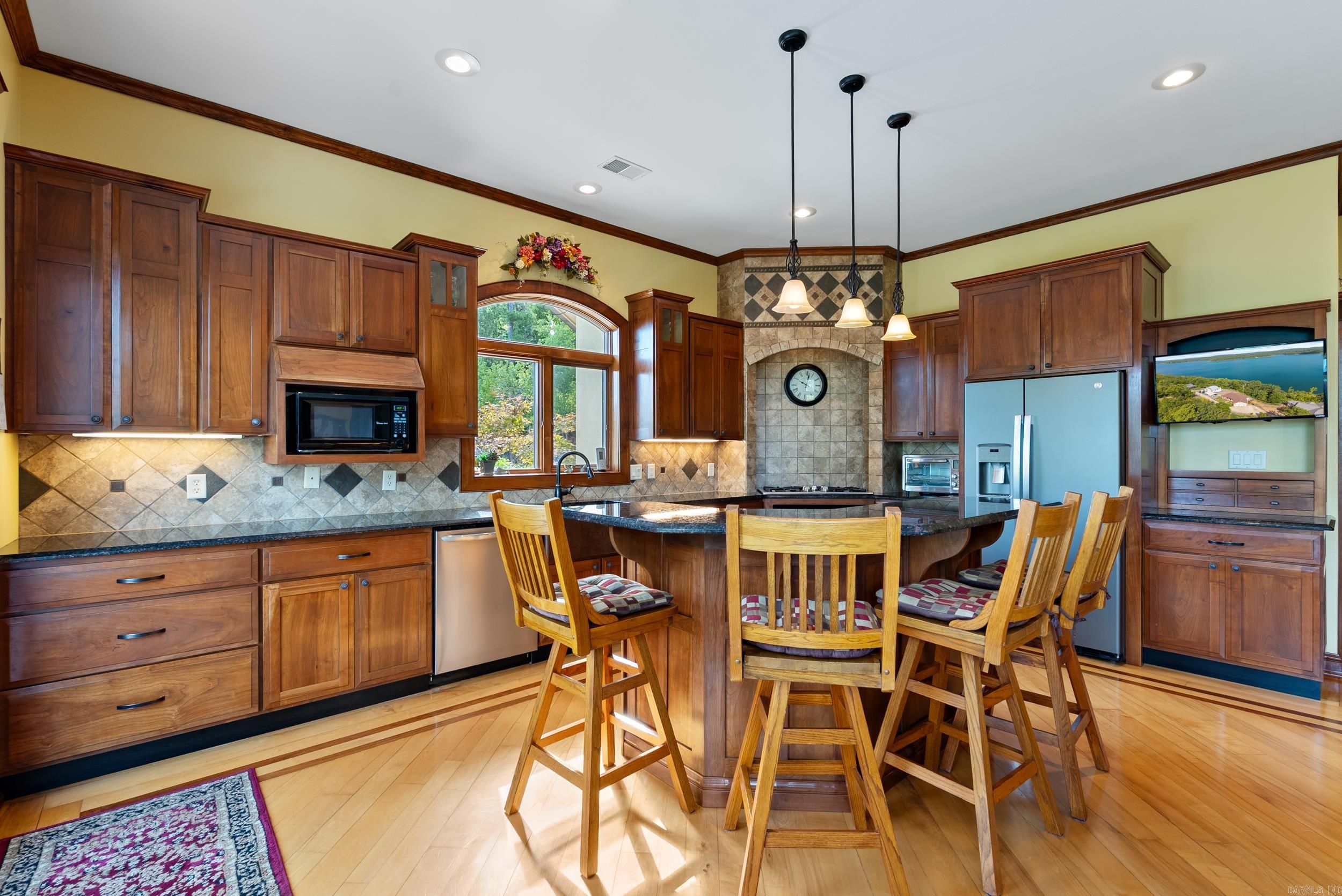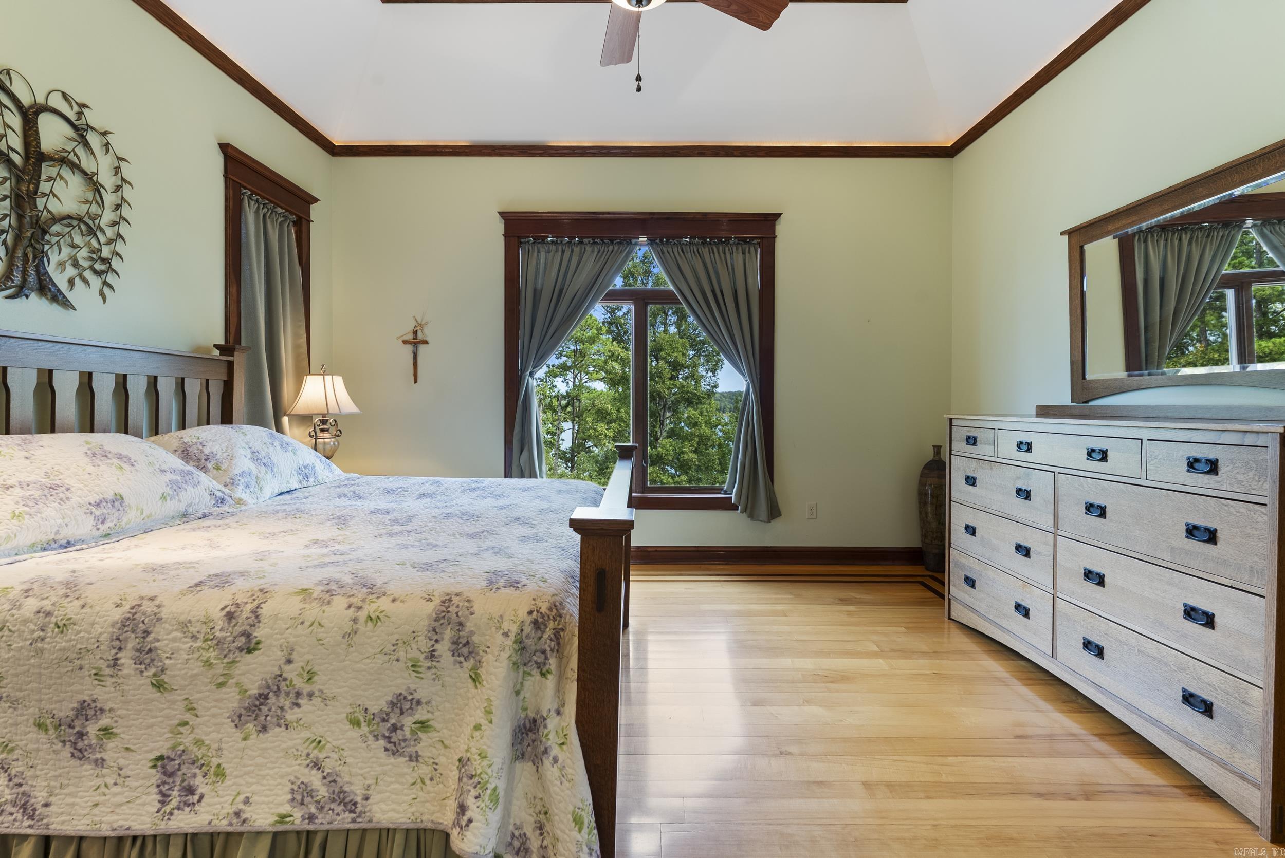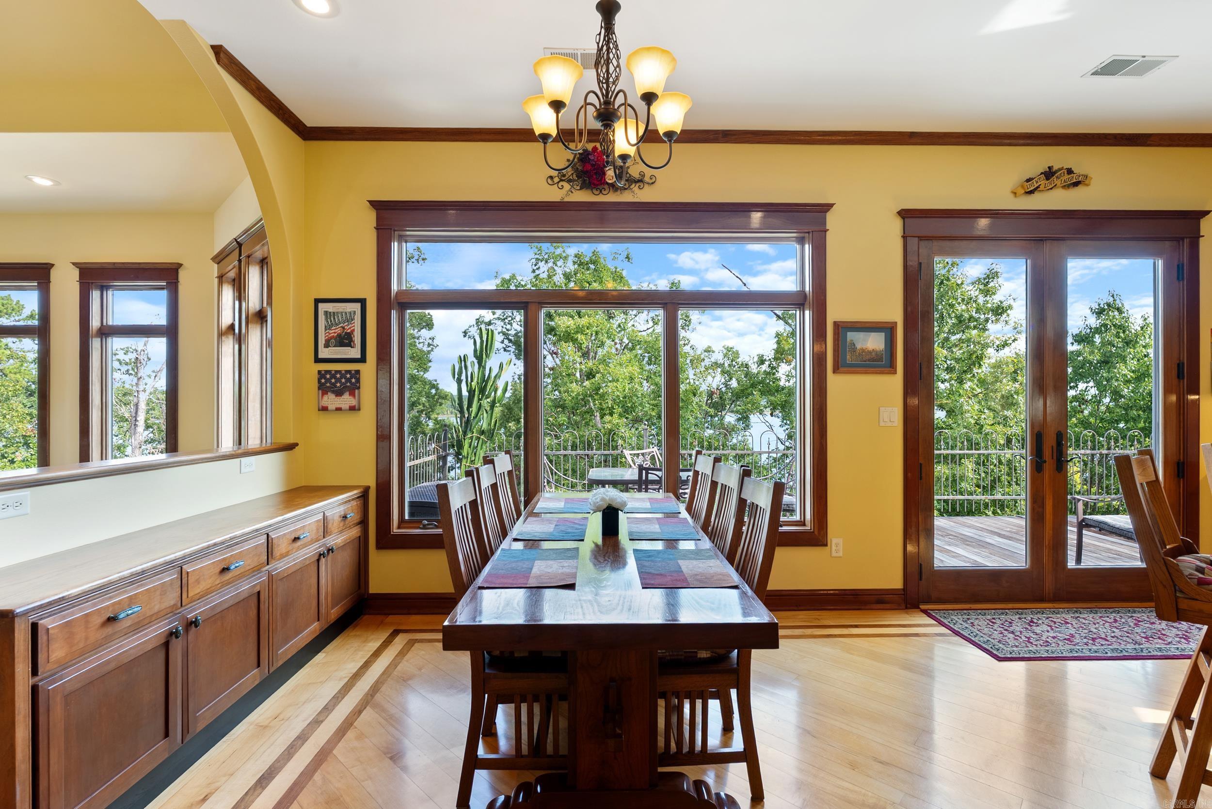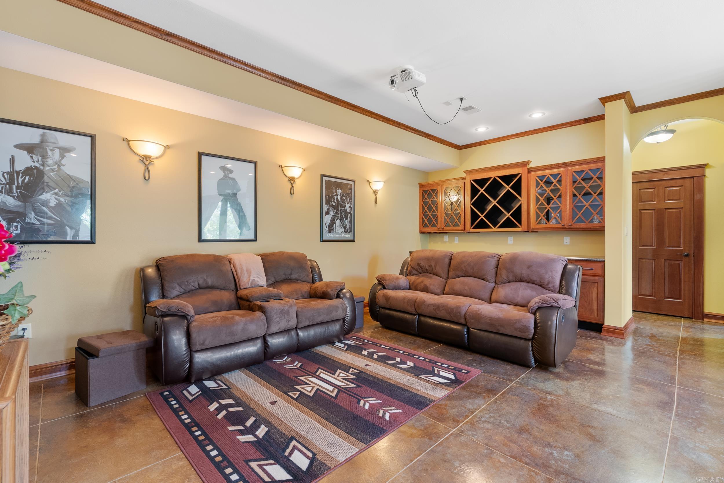 Welcome to your dream retreat on beautiful Greers Ferry Lake! This luxurious lakefront home is full of warmth, character, & high-end finishes—from stunning in-laid floors to customized cherry wood trim, cabinets and beautiful doors. The open floor plan offers bright, spacious living with breathtaking lake views from nearly every room—perfect for relaxing or entertaining. A grand, sweeping staircase connects two inviting living areas, each with its own cozy fireplace. Enjoy movie nights in the dedicated theater area & host friends & family with ease in multiple entertainment spaces. The walk-out basement opens to a large patio—ideal for lakeside gatherings and sunset views. A gourmet kitchen with generous pantry makes entertaining effortless, while the built-in tornado and storage room adds extra peace of mind. For added convenience, nearby boat launch & storage facilities make enjoying the lake even easier—bring your boat, jet skis, & water toys with confidence. Located twenty minutes from Sugar Loaf park & twenty minutes from Highway 65. 2x6 Construction, spray foam insulation, New Roof in 2025, newer DW&Fridge, oversized 2 car garage (700+sqft) Lake living at its finest!