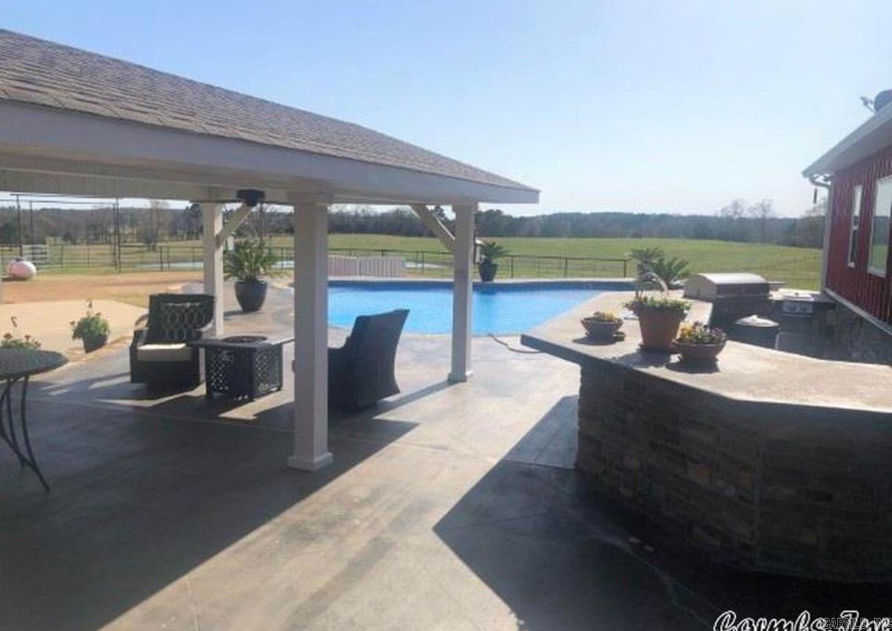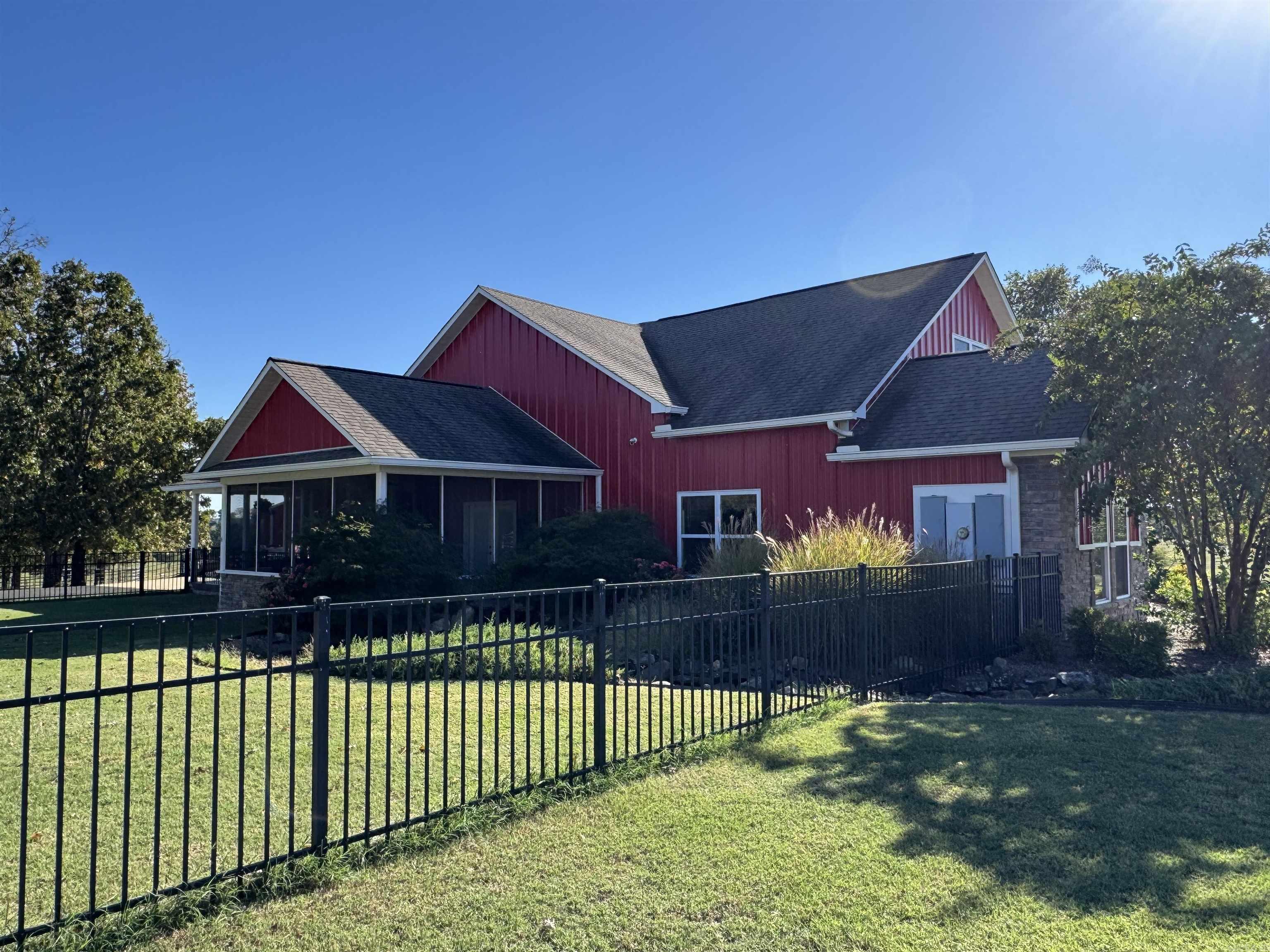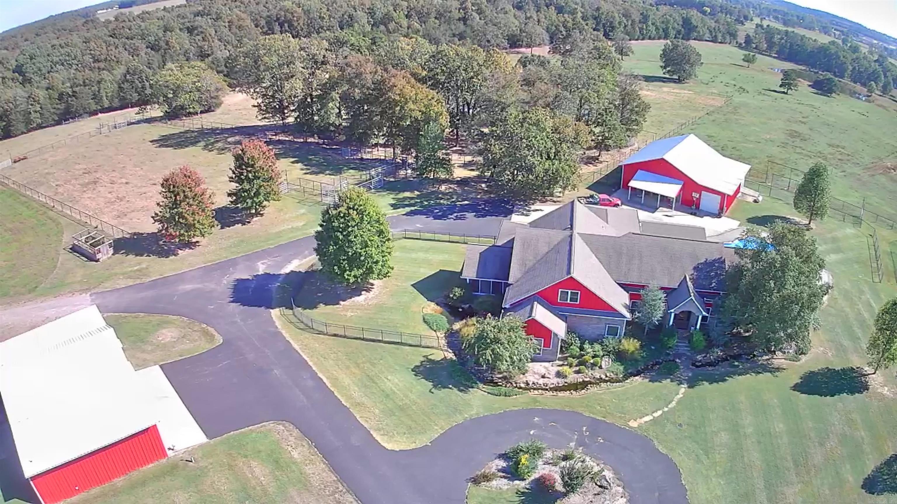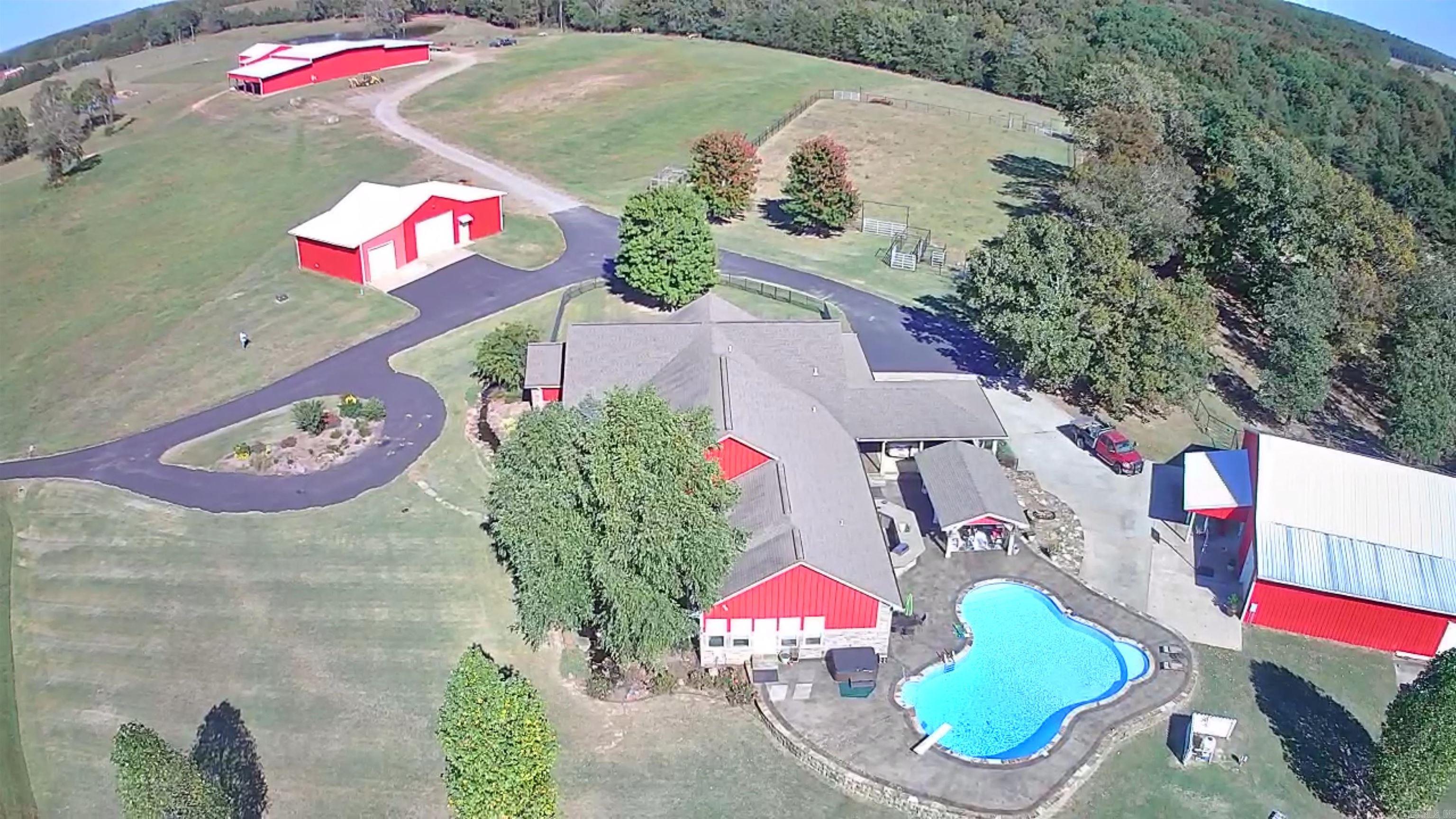 Welcome to your dream ranch — Come through a gated entrance to a stunning 5436 sq ft luxury residence set on 252 rolling acres of prime land, thoughtfully designed for both upscale living and equestrian or cattle operations. This rare offering combines timeless elegance, functional ranch infrastructure, and modern convenience in one extraordinary package. Some features are 5 bed/5.5 bath that boast 2 primary suites, large office, pantry, laundry room, formal dining room, windowed sun room and a separate screened-in porch. Additionally, this kitchen is a chef's dream with an island perfect for entertaining, upscale GE Monogram appliances, and custom cabinetry. Outside you'll find a beautiful saltwater pool, hot tub, covered patio, superb landscaping, 7 stall barn with lots of extras, covered arena, roping arena, shop, equipment barn, ponds in every pasture, and 2 bd/1 ba guest house or rental apartment! See agent remarks for extensive features list. Charming 1305 sq ft 2 bed / 1 bath barndominium, ideal for guests, ranch hands, or rental income is tucked away on the backside of the property. It has a balcony with views of a pond and most of the pastures.
