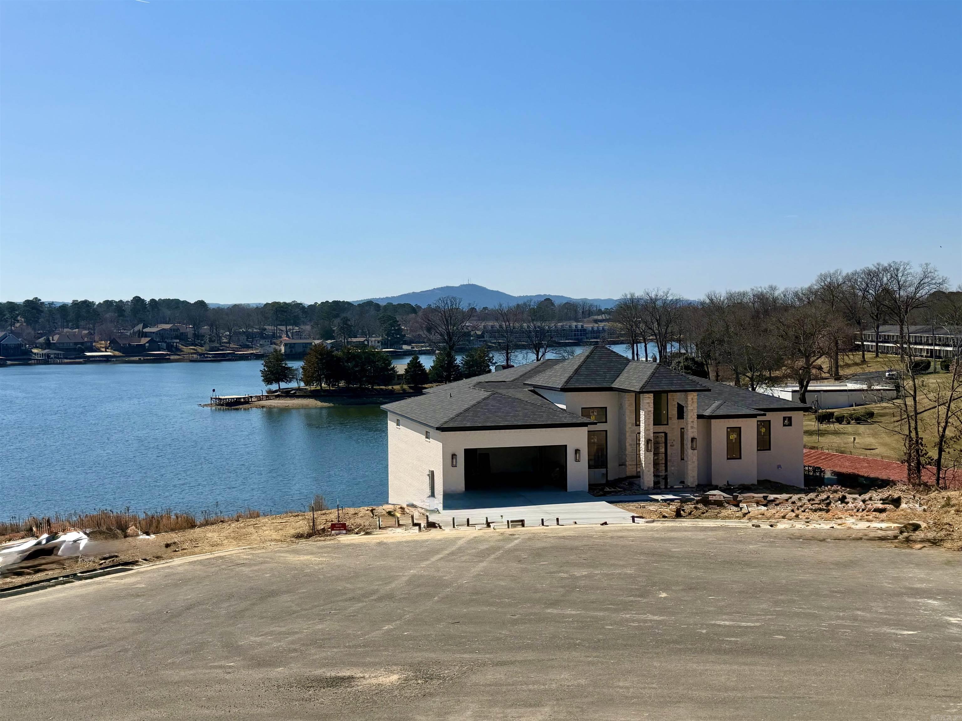 Experience Lake Front Luxury in this brand-new Vista Point showpiece with panoramic Lake Hamilton views, just minutes from Oaklawn and historic Bath House Row. Step through the soaring 16-foot entry into a breathtaking living area where a custom site-built fireplace and quad sliding glass doors frame endless water views and open to a massive covered deck with its own fireplace. The gourmet kitchen is a culinary dream, featuring a professional 6-burner gas range, double oven, built-in refrigerator, wine fridge, waterfall island, and an oversized butler’s pantry. The main-level primary suite offers lake views, a cathedral ceiling, spa-inspired double-sided shower, dual vanities, and a huge walk-in closet with its own washer and dryer. Downstairs, entertain like never before in a full-scale bar with a dramatic wall of liquor and wine shelving, seating for guests, and a spacious game room. A second primary suite, additional laundry, and more deck space complete the lower level. Outdoors, enjoy your private boat dock, full outdoor kitchen, and 3-car garage—all designed to deliver an unforgettable lakeside lifestyle.