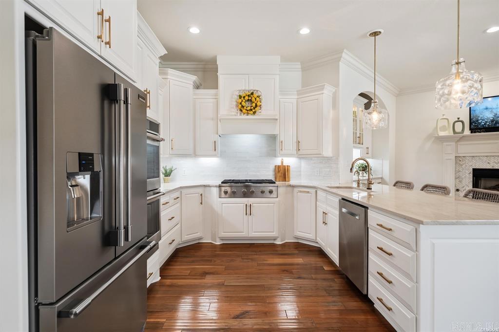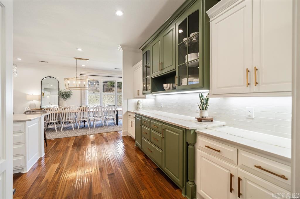 Welcome to the highly sought-after Red Oak Ridge, Hot Springs premier gated community. Nestled in a natural oasis surrounded by trees, this beautifully custom-built, updated home features a front balcony perfectly positioned for stunning Red Oak Lake views. The freshly painted, versatile floor plan offers 4 bedrooms, 3.5 baths, and an office used as a 5th bedroom. A mudroom with removable cubbies provides a perfect drop zone. The extra-large, fully remodeled chef’s kitchen boasts endless storage, a walk-in pantry, gorgeous new countertops, instant hot water, and premium appliances, including a WiFi Café double oven and 6-burner gas cooktop. Entertain in spacious living areas with updated lighting and two fireplaces featuring sleek new tile. The primary suite is a private retreat with new hardwood floors and spacious his-and-hers closets with added upper storage. Upstairs features 3 bedrooms with walk-in closets, 2 full baths (one with new tile), a new linen closet, upgraded insulation, and brand-new carpet. Complete with a freshly painted front door and shutters, a garden bed, and a garage with extensive built-in shelving, this pristine property is a must-see.