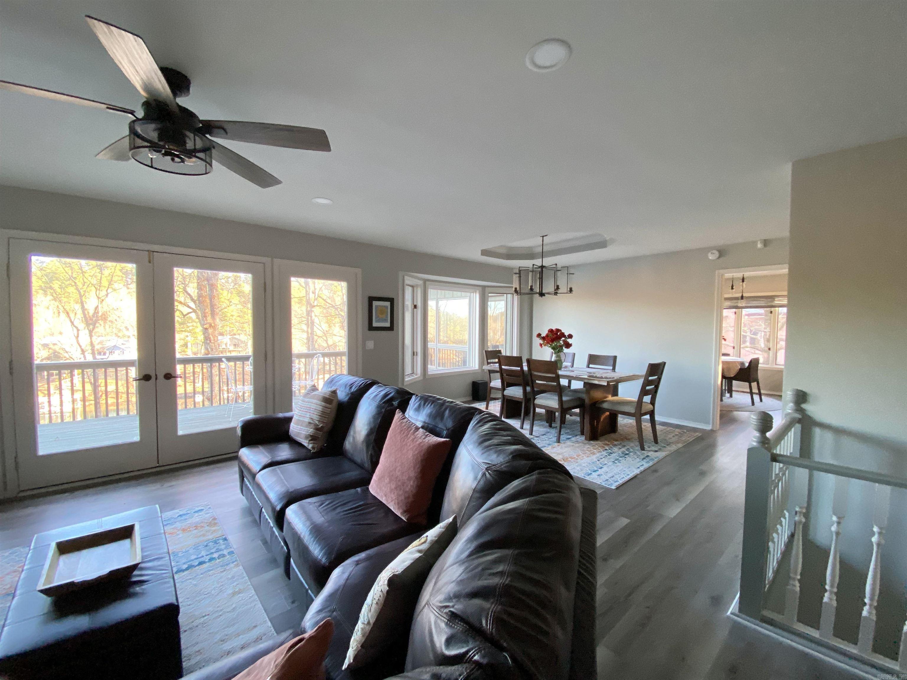 Stunning Lake Cortez Waterfront Retreat! Beautifully renovated 4BR/3BA lakefront home on a low-maintenance 0.68-acre lot with desirable southern exposure for bright interiors and cool lake breezes without intense afternoon heat. Enjoy direct access to your private dock, fire pit, and lakeside gathering areas via concrete paths. The main level offers panoramic lake views from the living and dining areas, primary suite and ensuite bath, Arkansas room, and expansive deck. The updated large kitchen and bar area, dinette, office/flex space, second bedroom, 2nd full bath and large laundry room offer convenient one-level living. The lower level is built for entertaining, offering a second living area, game room, two additional bedrooms, full bath, and a second large deck. Durable waterproof flooring and electric fireplaces add comfort and ease of maintenance. New HVAC systems and water heaters will be installed prior to closing. Currently a profitable vacation rental (information given upon request), this fully updated beautiful home can serve as a second home and an income-producing property or your very own primary lake home.