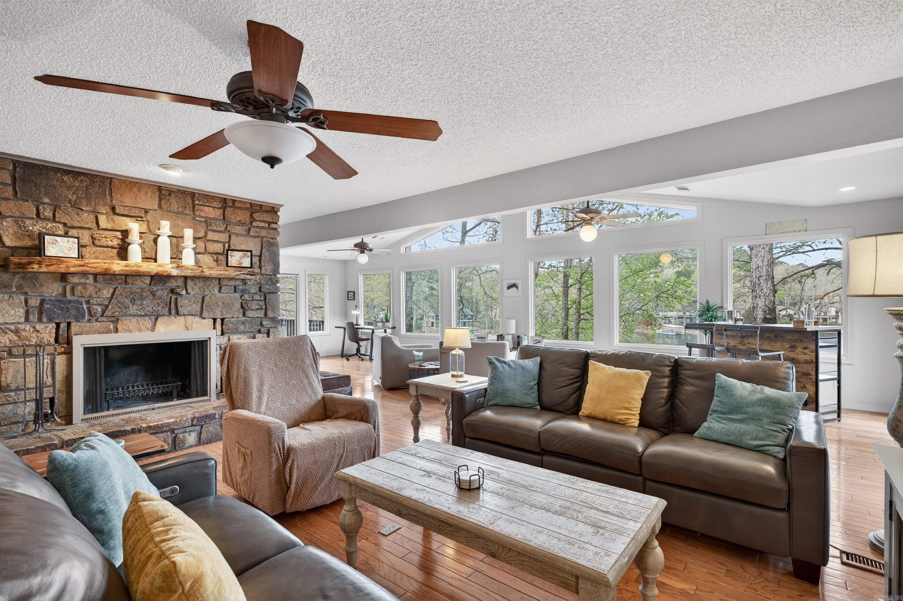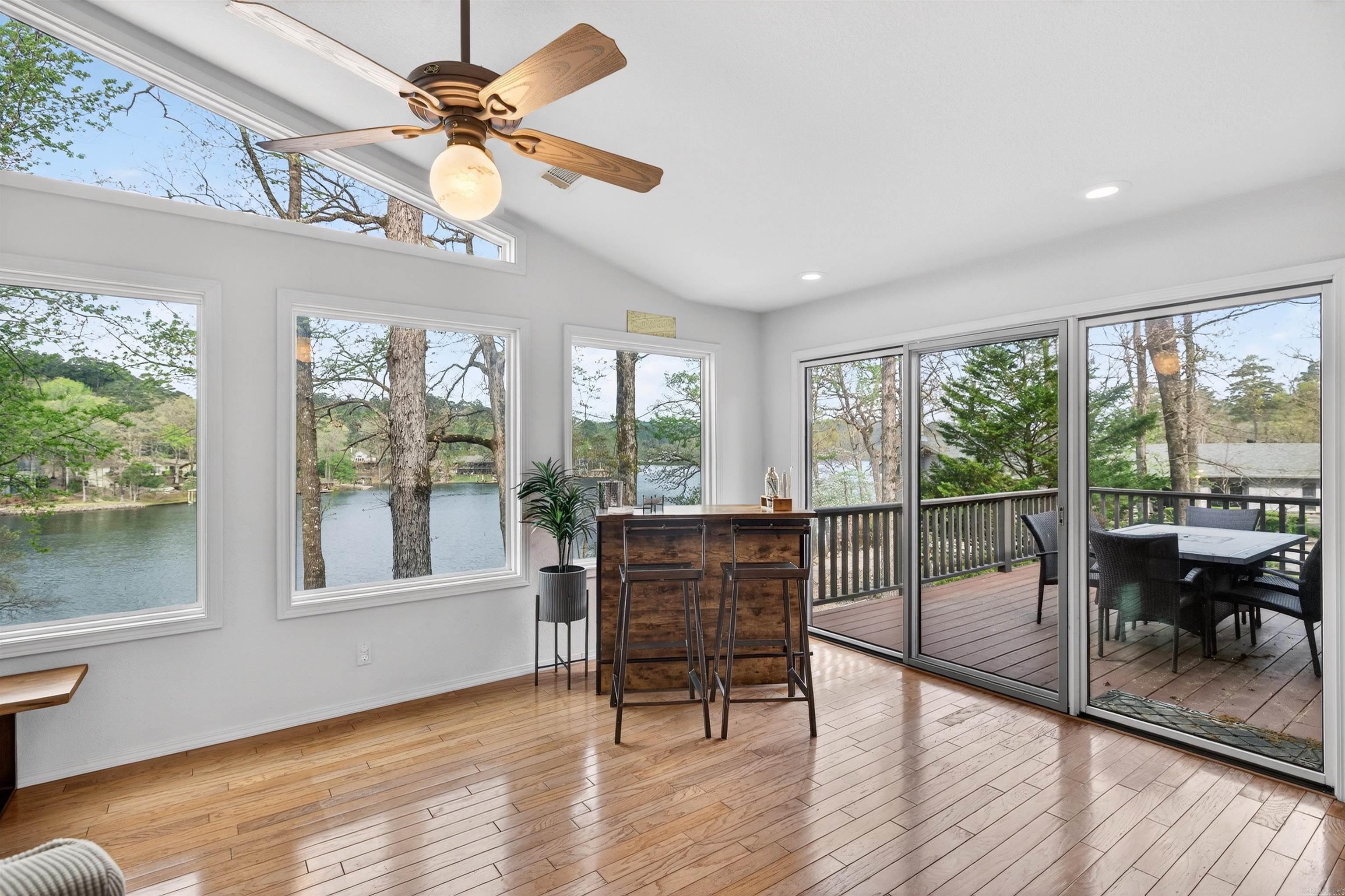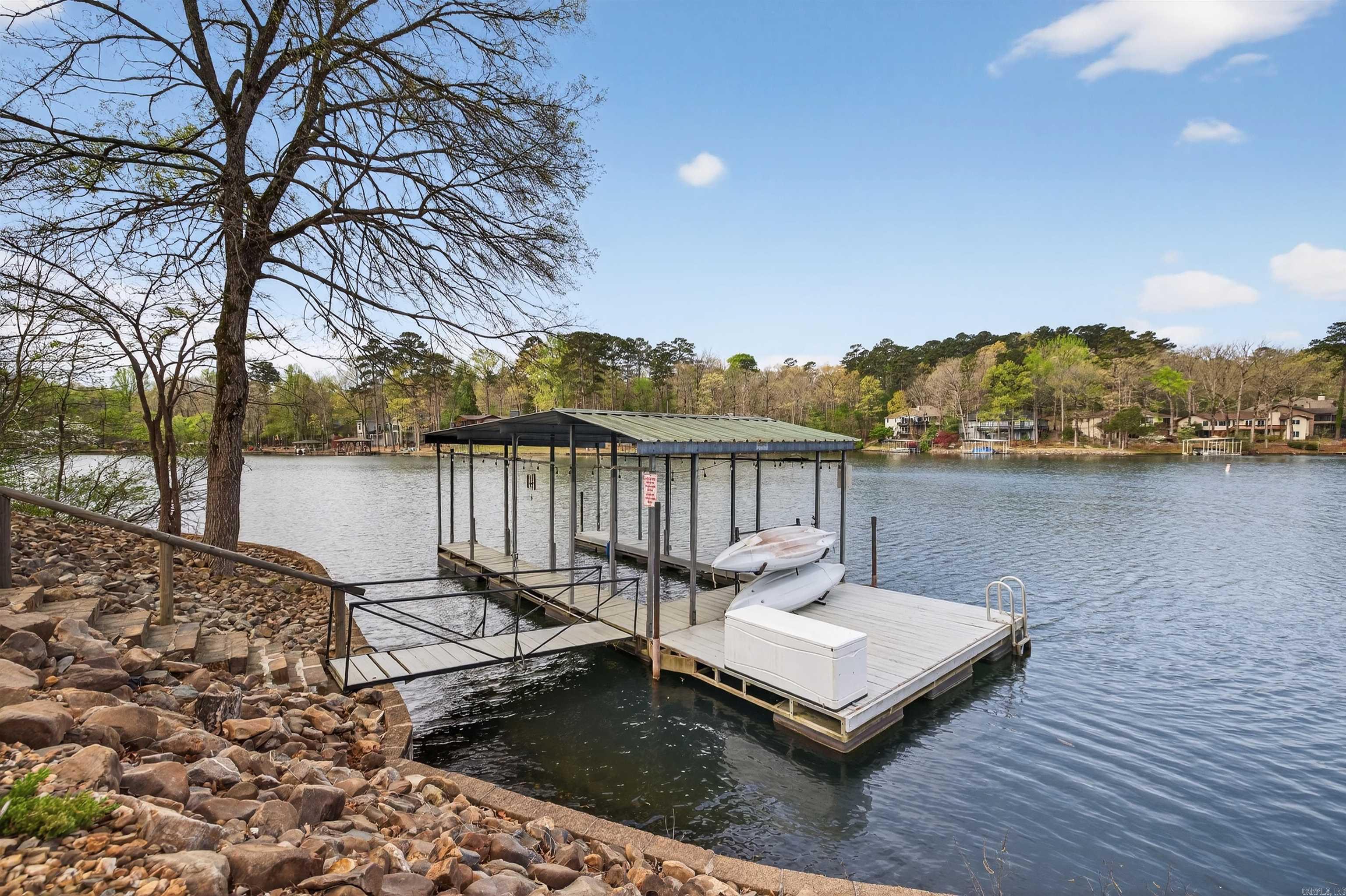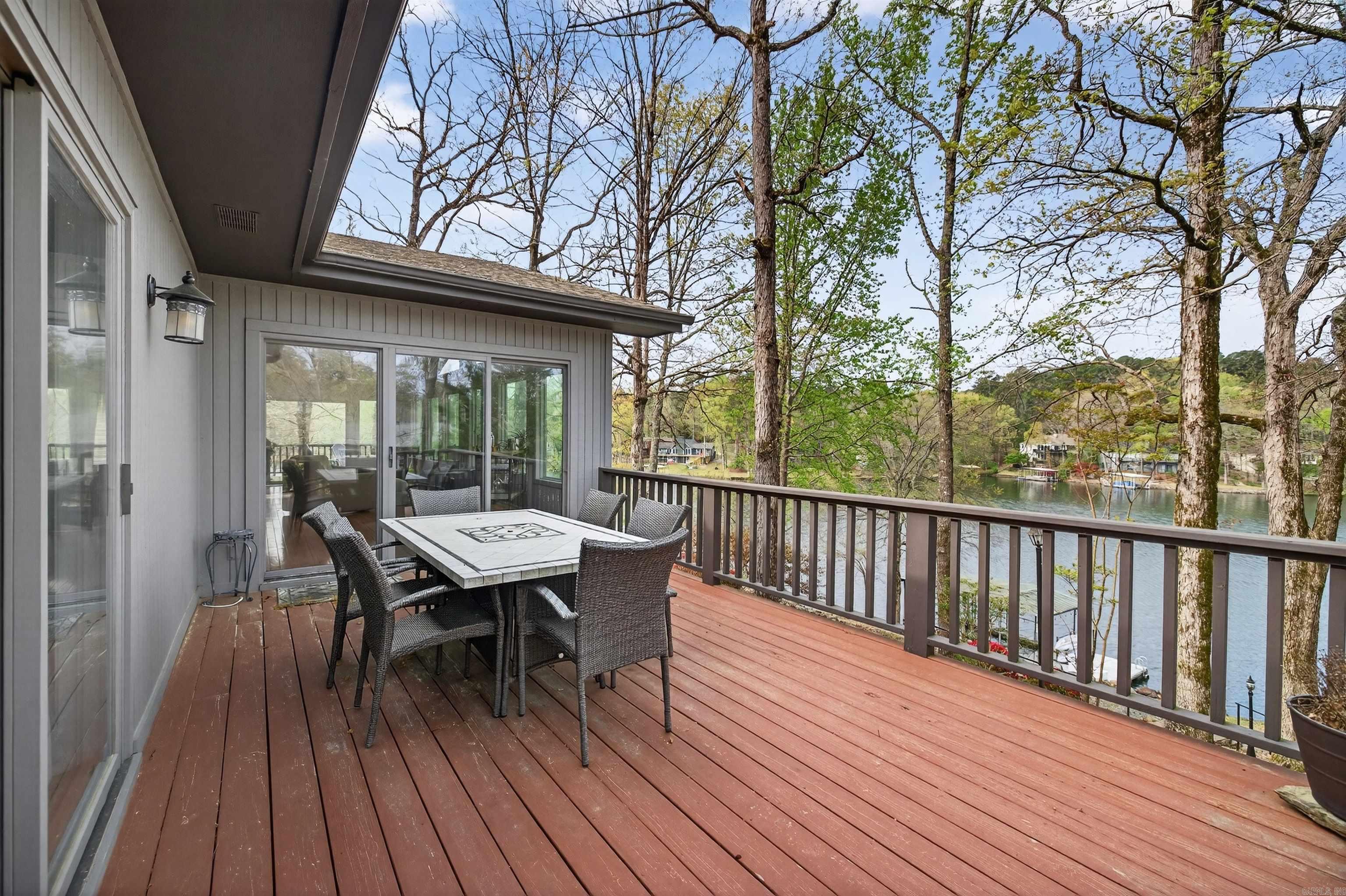 Enjoy lake living in this well-maintained home located on beautiful Lake Cortez, a pristine, clear water lake where the fishing is great and tranquility abounds. Enjoy the views from the spacious deck on the main level or from the lower-level patio. Lower level features 2 bedrooms, a bath, and a living area with a fireplace. This home is perfect for a vacation rental or for a primary residence. Hot Springs Village has a one-time buy-in fee of $2,000 paid at closing.